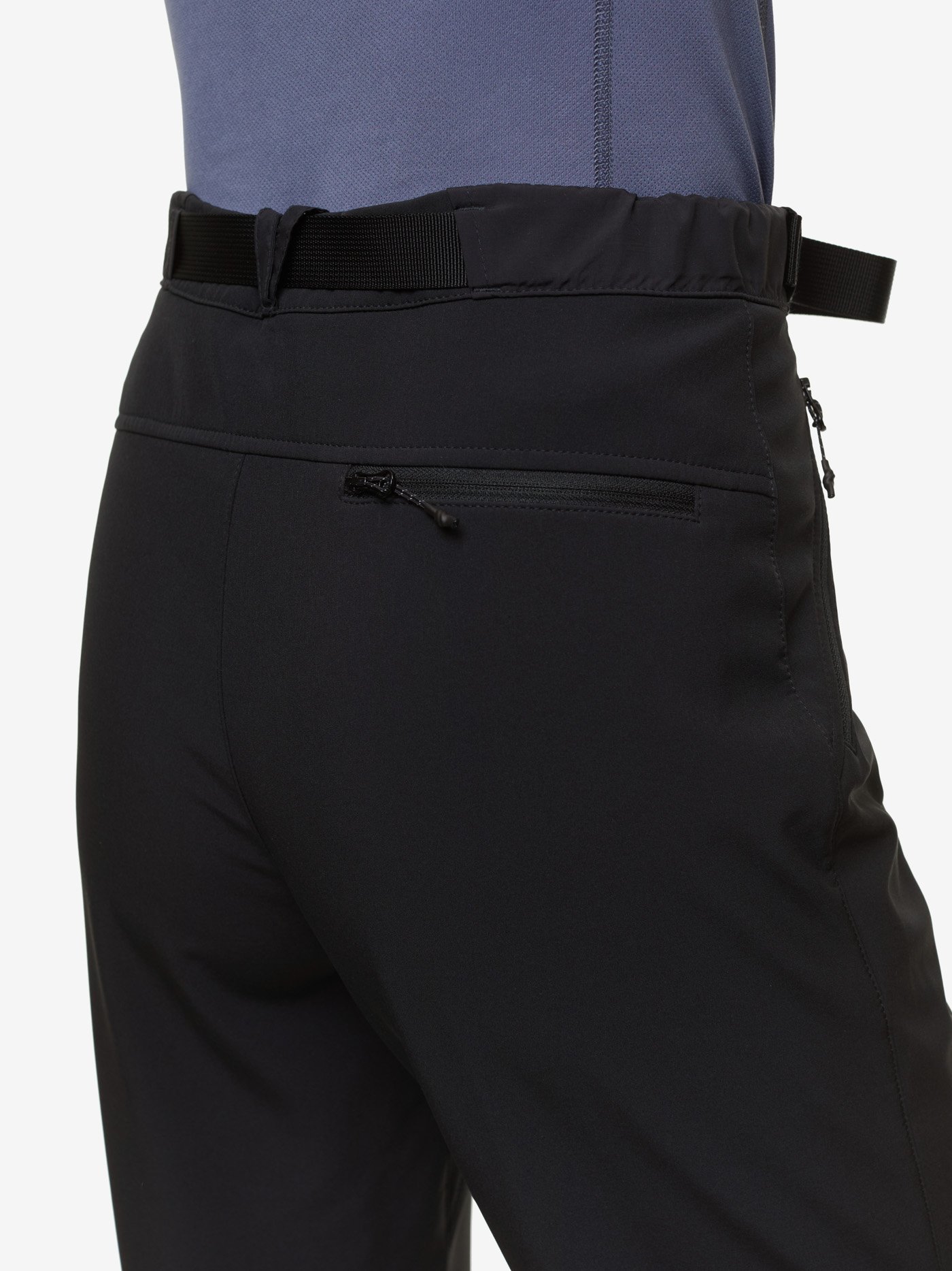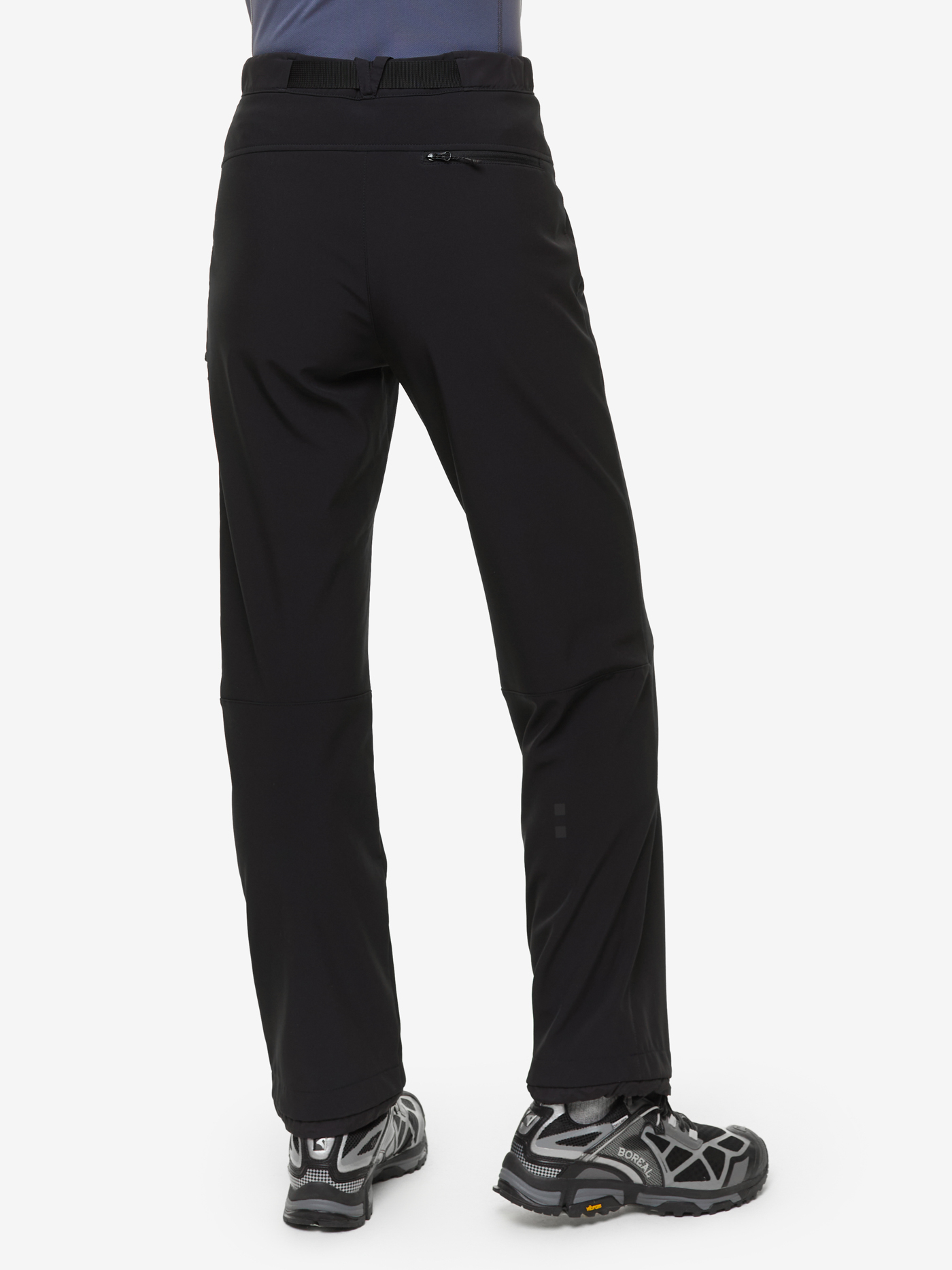 Женские брюки из плотного софтшелл-материала для походов, треккинга и лыжных прогулок. Плотная и высокоэластичная ткань с мягким внутренним ворсом сохраняет комфорт при активных движениях, защищает от ветра, легких осадков, отводит излишнюю влагу.