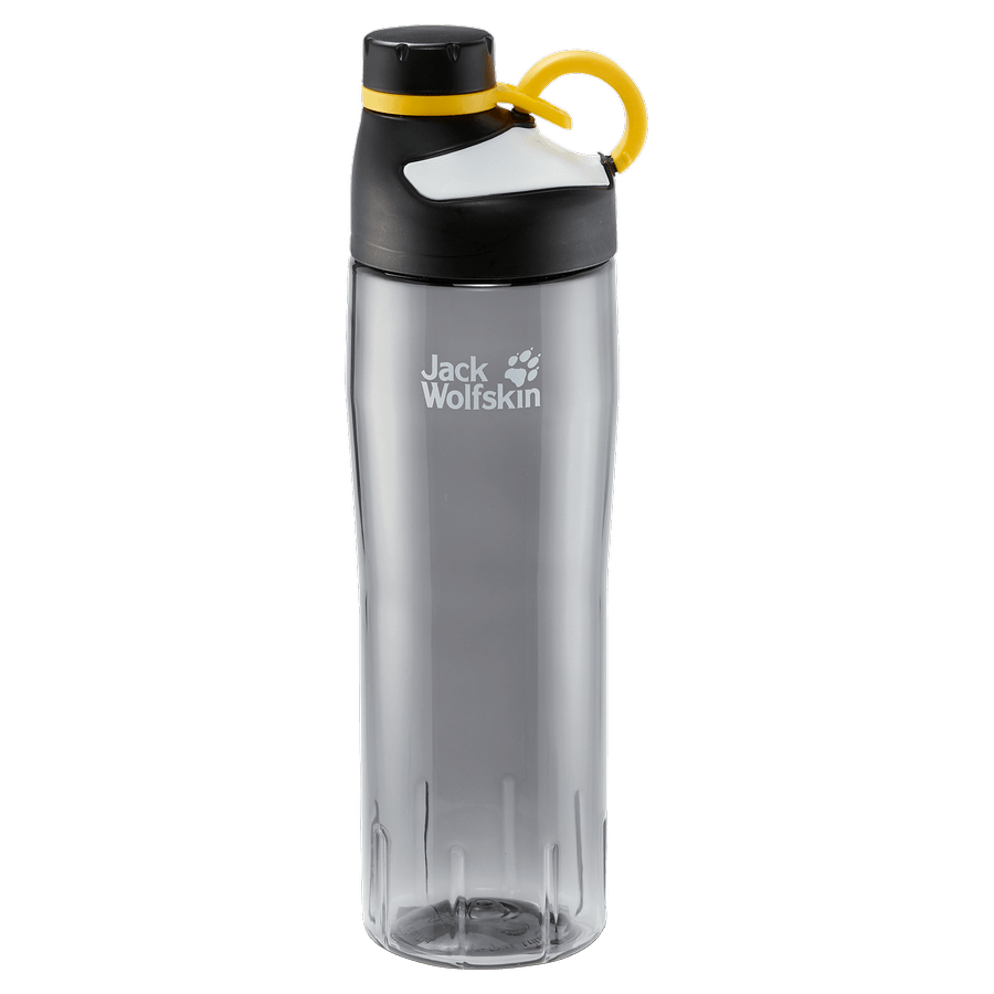 Крышка бутылки прикреплена к корпусу, так что Вы не потеряете ее. При необходимости бутылку можно пристегнуть к Вашей сумке или рюкзаку, а за ручку в форме кольца бутылку можно держать одним пальцем.