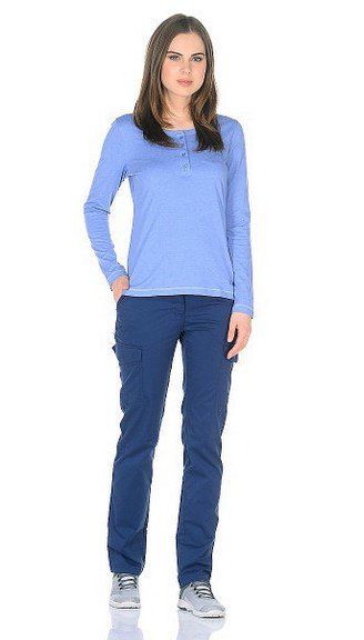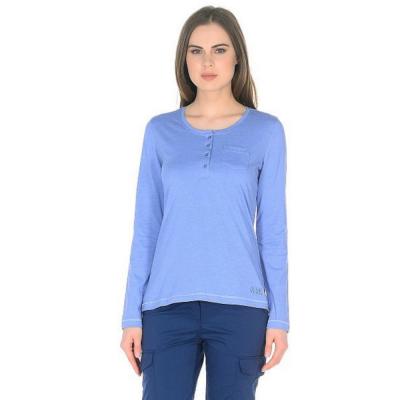 Футболка выполнена из сочетания натурального органического хлопка и полиэстера. Такое решение порадует вас своей долговечностью и приятной текстурой материала. Не смотря на то, что у футболки этой модели присутствует длинный рукав, она остается прохладной и легкой, поэтому подойдет для теплой весенней погоды. Глубина декольте регулируется при помощи четырех пуговиц, а сбоку на груди есть небольшой декоративный кармашек.
