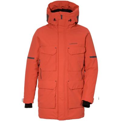 Мужская парка из водонепроницаемой и непродуваемой мембранной ткани с утеплителем 200 гр/м2. Проклеенные швы и дополнительная пропитка обеспечивают максимальную защиту от внешней влаги. Регулируемые манжеты (на липучках) и глубокий фиксированный капюшон (на шнурке). Двусторонняя фронтальная молния под планкой. Внутренние эластичные манжеты с отверстием для большого пальца. Наружные нагрудные и нижние карманы - под клапанами на кнопках. Внутренний карман и отверстия для МР-3. Светоотражатели темного цвета - на капюшоне и рукавах. Классическая зимняя парка с большим количеством карманов - отличная модель для города.