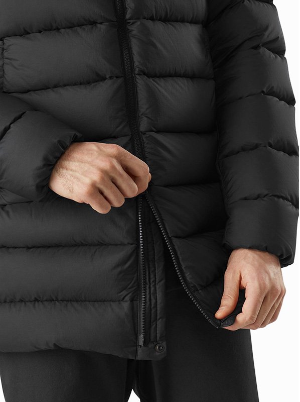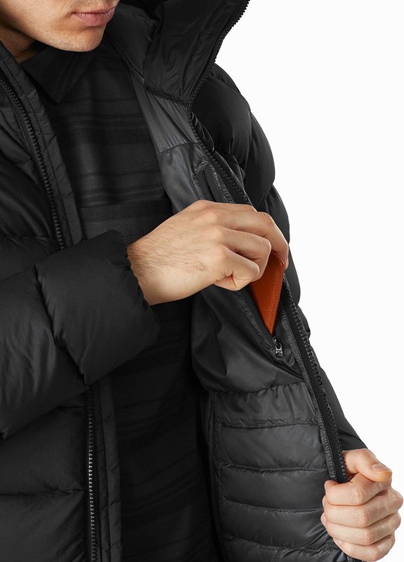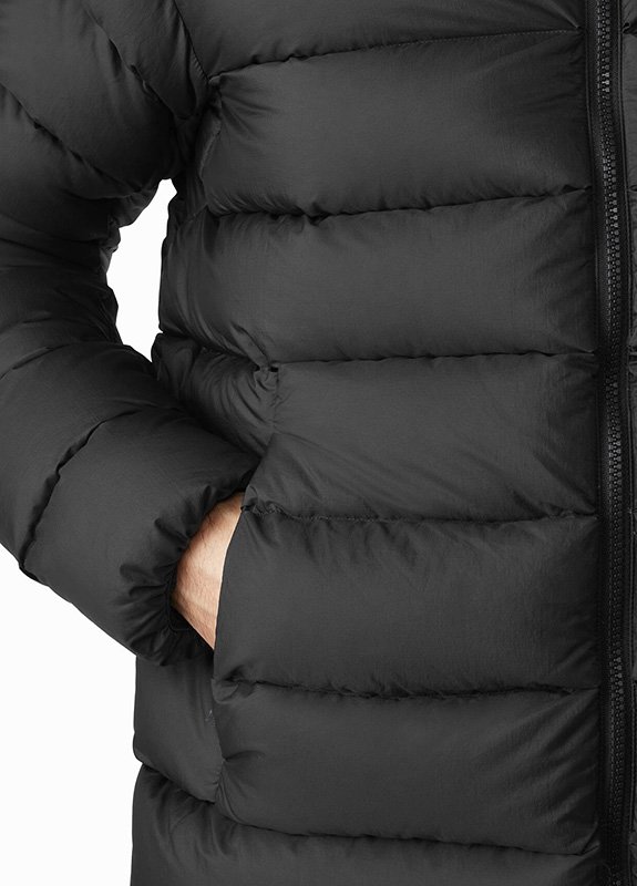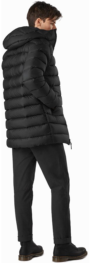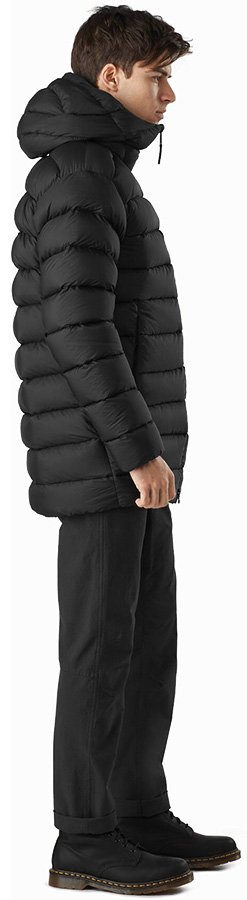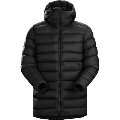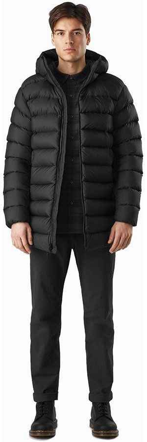 Лёгкое мужское пуховое пальто с капюшоном, разработанное для города. Лёгкий нейлон с водоотталкивающей пропиткой защитит от ветра и снега. Прообразом этого пальто послужила популярная пуховая куртка Cerium SV.