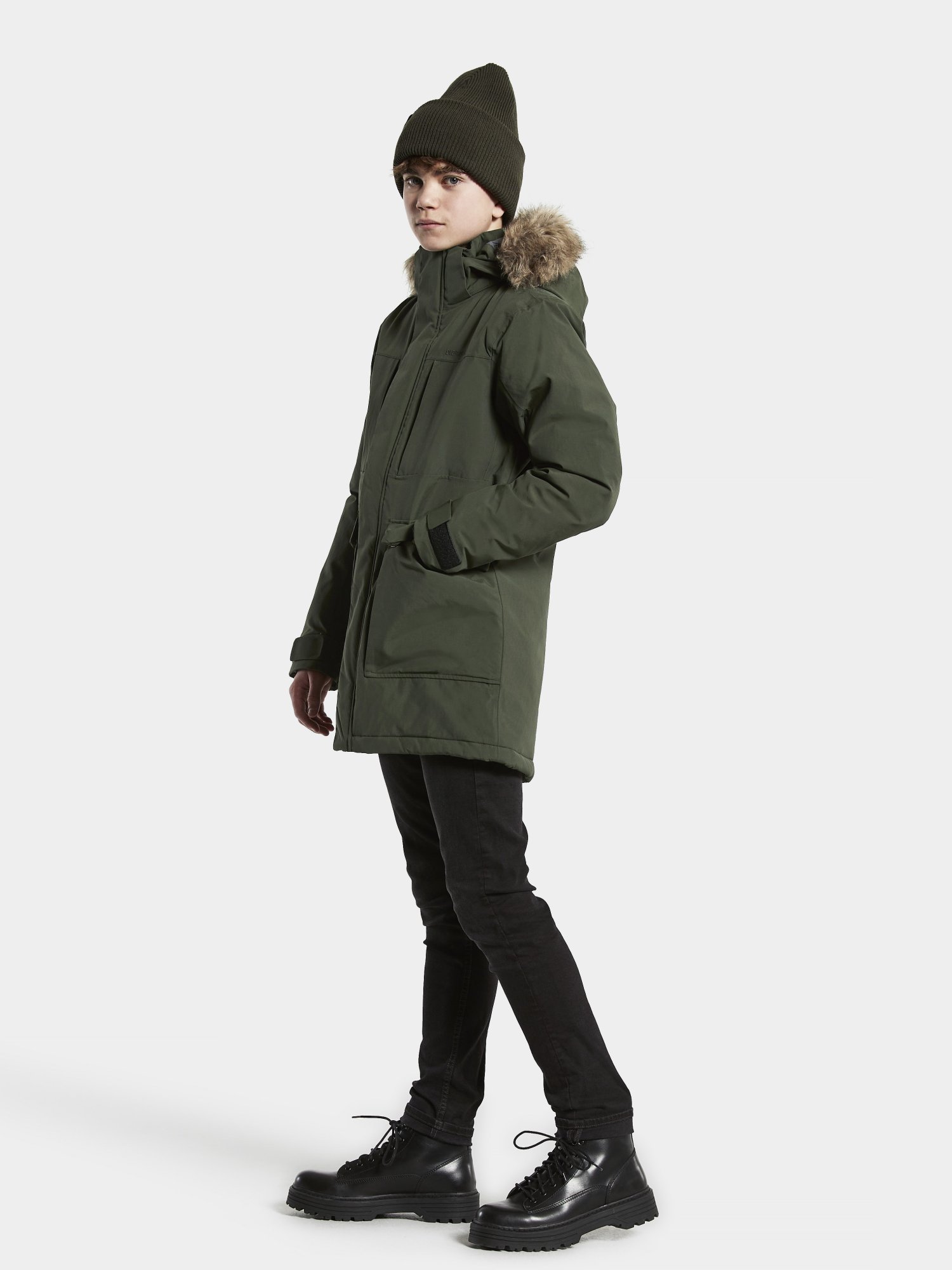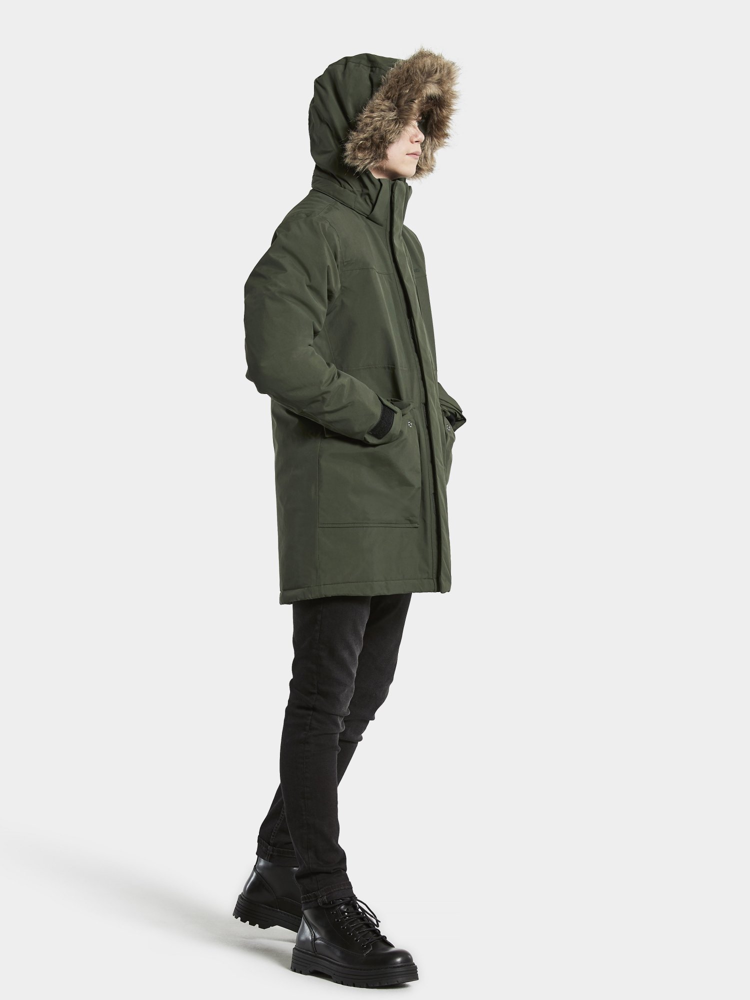 Парка из водонепроницаемой и непродуваемой мембранной ткани с утеплителем (200 г/м2). Проклеенные швы и дополнительная пропитка обеспечивают максимальную защиту от внешней влаги и ветра. Подкладка на спинке до пояса из искусственного меха. Регулируемый съемный капюшон со съемной опушкой из искусственного меха. Фронтальная молния под планкой. Внешние накладные карманы - под планкой на кнопках. Регулируемые концы рукавов (на липучках). Внутренние эластичные манжеты с отверстиями для больших пальцев. Стильная парка для города.Одна из самых теплых моделей.