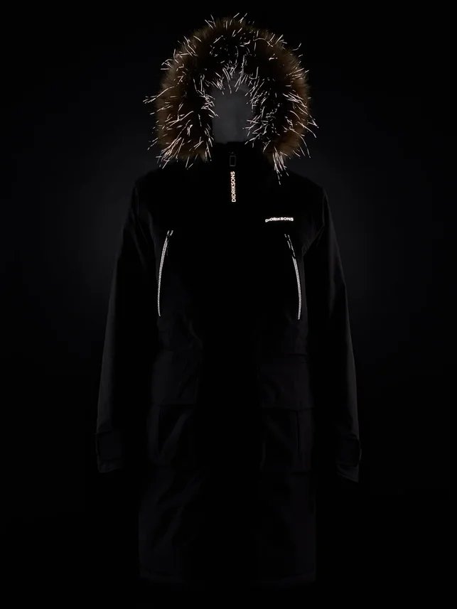 Парка спортивного кроя из водонепроницаемой и непродуваемой мембранной ткани с утеплителем (250 г/м2). Проклеенные швы и дополнительная пропитка обеспечивают максимальную защиту от внешней влаги. Подкладка в капюшоне и на спинке ниже пояса - из искусственного меха. Регулируемые манжеты (на липучках), капюшон и талия. Фиксированный глубокий капюшон и высокий ворот защитят от холодного ветра и снега. Опушка из искусственного меха на капюшоне - съемная. Внутренние эластичные манжеты. Двусторонняя фронтальная молния под планкой на кнопках. Объемные наружные карманы - под клапанами на кнопках, нагрудные - на молниях. Внутренний потайной карман. Светоотражатели: лого на спине на планке убирается под кокетку, логотипы на груди и на спинке в зоне плеча справа, в опушке капюшона (ворс), Эргономичный крой обеспечивает отличную посадку. Стильная теплая модель для города на самые морозные дни.