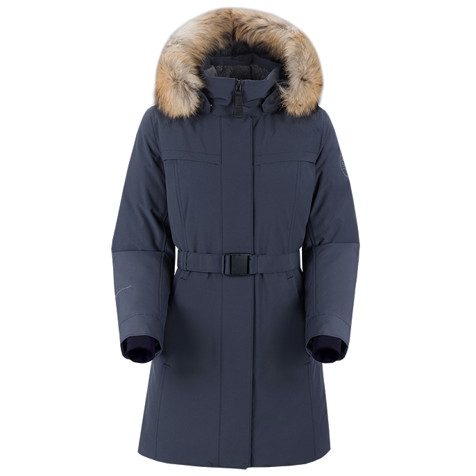 - Регулируемый по высоте и по лицевому срезу отстёгивающийся теплый капюшон со съёмной меховой опушкой.