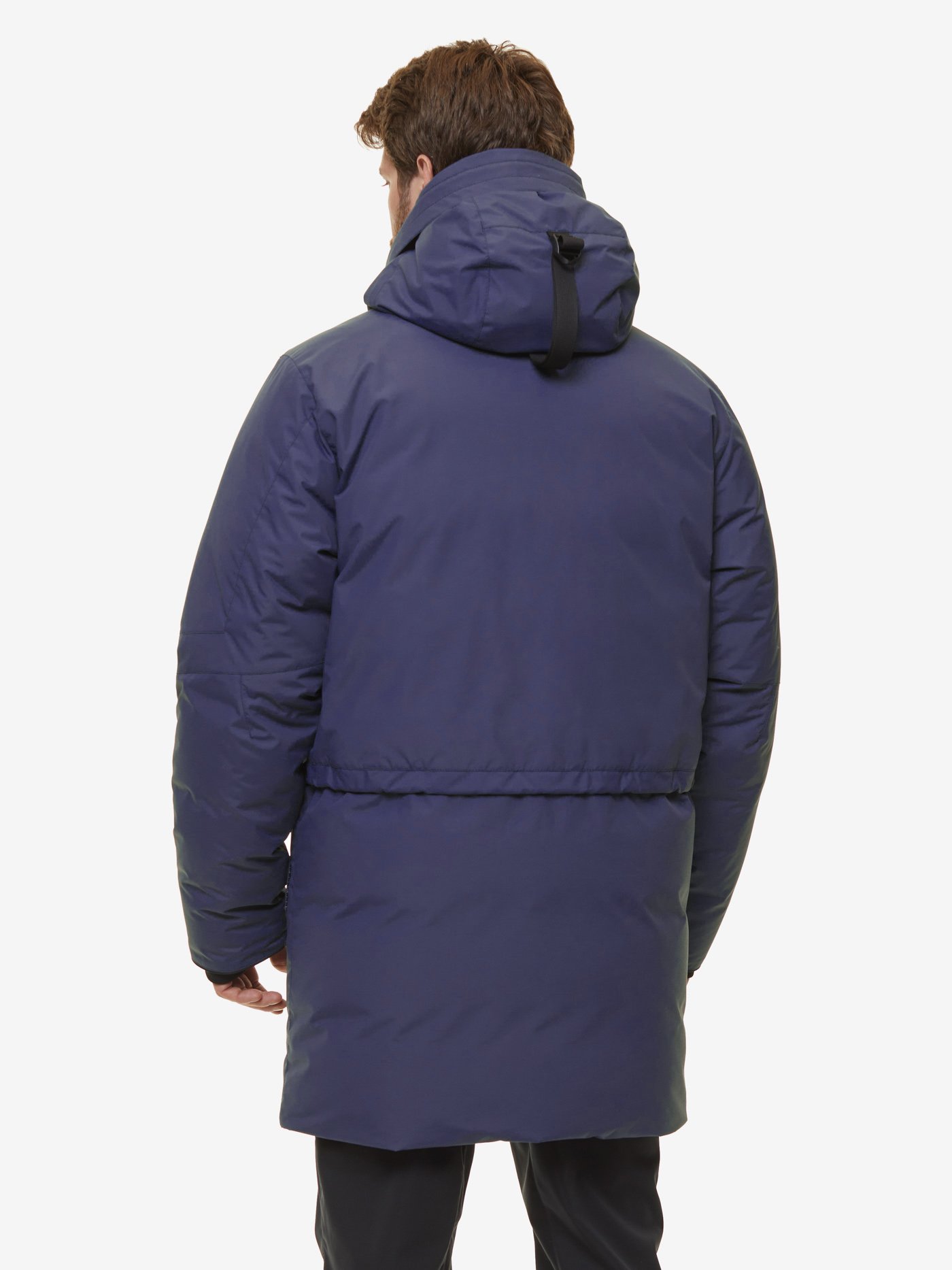 Зимняя мужская куртка-аляска для города и путешествий. Плотная мембранная ткань куртки надежно защищает от осадков и ветра, гарантирует хорошую дышимость изделия. Слегка удлиненная, наполненная первоклассным пухом, эта куртка выдержит настоящие морозы. Функциональная, теплая и удобная вещь.