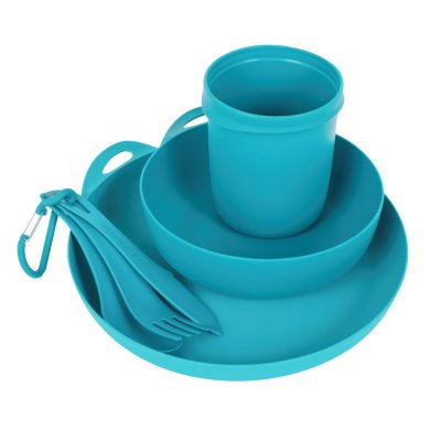 Облегченный набор посуды Delta Camp Set из шести предметов: чашка, большая плоская тарелка, средняя глубокая тарелка, нож, вилка и ложка. В набор входит вся необходимая для употребления пищи посуда от завтрака до ужина. Набор складывается в сетчатую сумку с утяжкой для переноски и хранения, что позволяет посуде хорошо просохнуть.