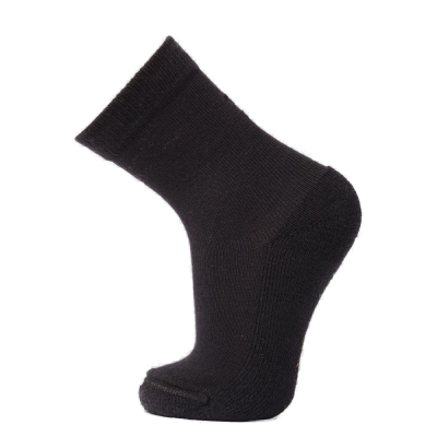 Носки с утепленной и усиленной подошвой, позволяющие гулять на улице в легкой обуви даже в холода. Идеальны для прогулок и игр в помещении. В холодное время года очень важно сохранять ноги ребенка в тепле. Однако излишне утепленная обувь может лишить малыша подвижности, затруднить движения во время прогулки. Тонкие и очень теплые термоноски «Soft Merino Wool» справляются сразу с двумя задачами: сохраняют тепло и обеспечивают свободу движения при ходьбе. В составе пряжи этих термоносков преобладает чистая шерсть мериносов, обладающая уникальными свойствами терморегуляции и отведения влаги с поверхности кожи. Благодаря гипоаллергенным свойствам мериносовой шерсти на коже ребенка не возникнут раздражения и опрелости. Примесь полиэстера и эластана обеспечивает идеальную посадку на стопе и делает носки износостойкими. Термоноски «Soft Merino Wool» закрывают щиколотку и лодыжку, что делает их удобными как для надевания под высокие сапожки, так и для дополнительного утепления ног в коротких ботинках. Мысок носка выполнен по технологии «плоский шов», не причиняющей дискомфорта нежной и чувствительной коже детских пальцев. Широкая анатомическая резинка-манжет плотно фиксирует носок на лодыжке, предотвращая сползание и перекручивание. Продукт произведен по лицензии и под контролем фирмы NRG GmbH (Германия) из шерсти мериносов от концерна Schoeller (Австрия). Качество шерсти в изделии подтверждено сертификатами Oeko-Tex®Standart100 и bluesing®.