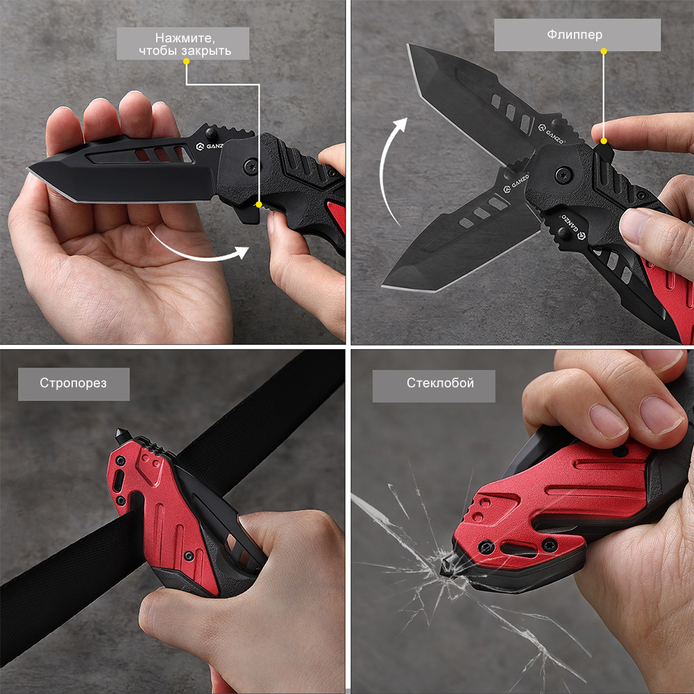 Ganzo G629-RD — это универсальный складной нож, предназначенный для туризма, охоты, рыбалки, а также повседневного ношения (EDC). Его конструкция сочетает в себе практичность, надежность и функциональность. Одной из отличительных особенностей модели является наличие встроенного стропореза и стеклобоя, что делает нож особенно незаменимым в экстренных ситуациях.