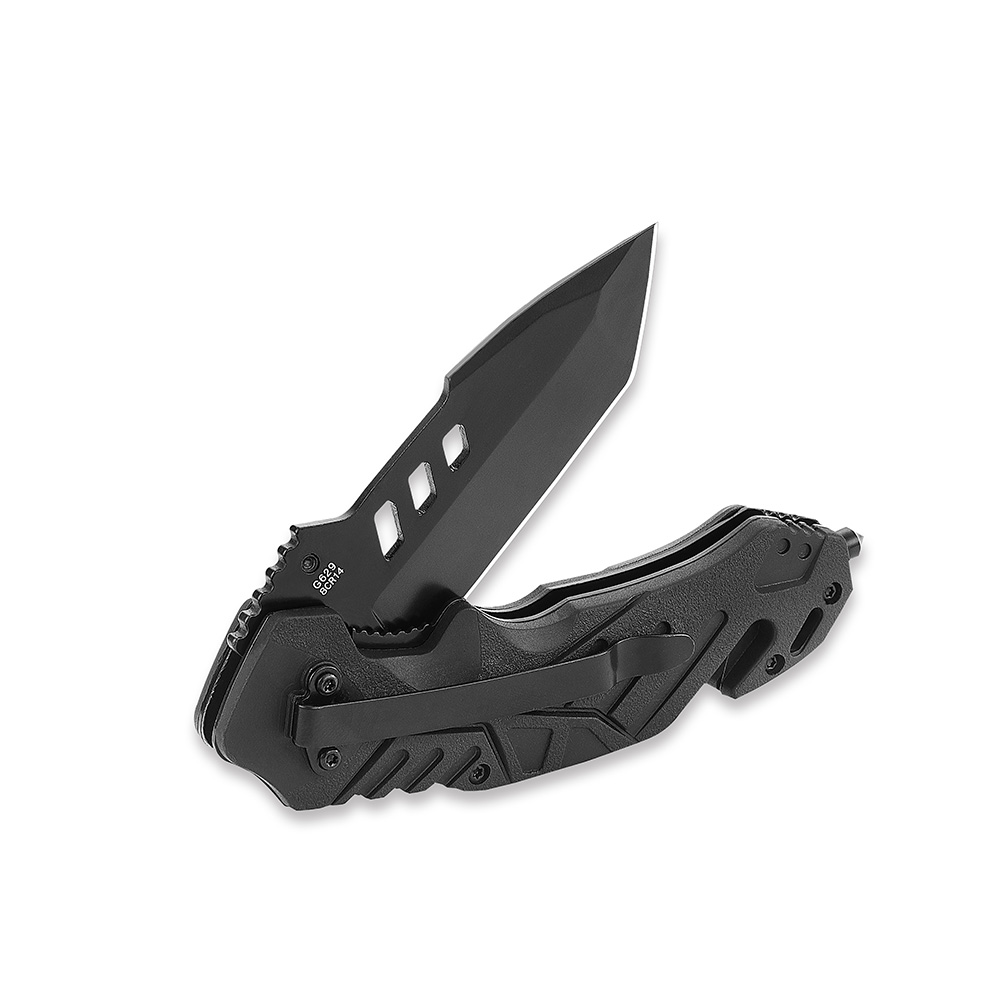 Дополнительные элементы конструкции включают стеклобой и стропорез — крайне полезные в чрезвычайных ситуациях. Также нож оснащен удобной металлической клипсой, которая позволяет закрепить его на поясе, кармане или снаряжении.