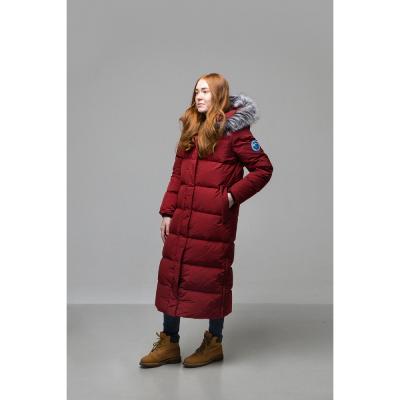 Элегантное женское пуховое пальто ниже колена. Очень теплое, до -45C. Утеплитель — натуральный гусиный пух 85/15 (увеличенная набивка). Объемный капюшон. И тепло, и стильно! Капюшон с опушкой из натурального меха северного енота, опушка отстегивается, на молнии.