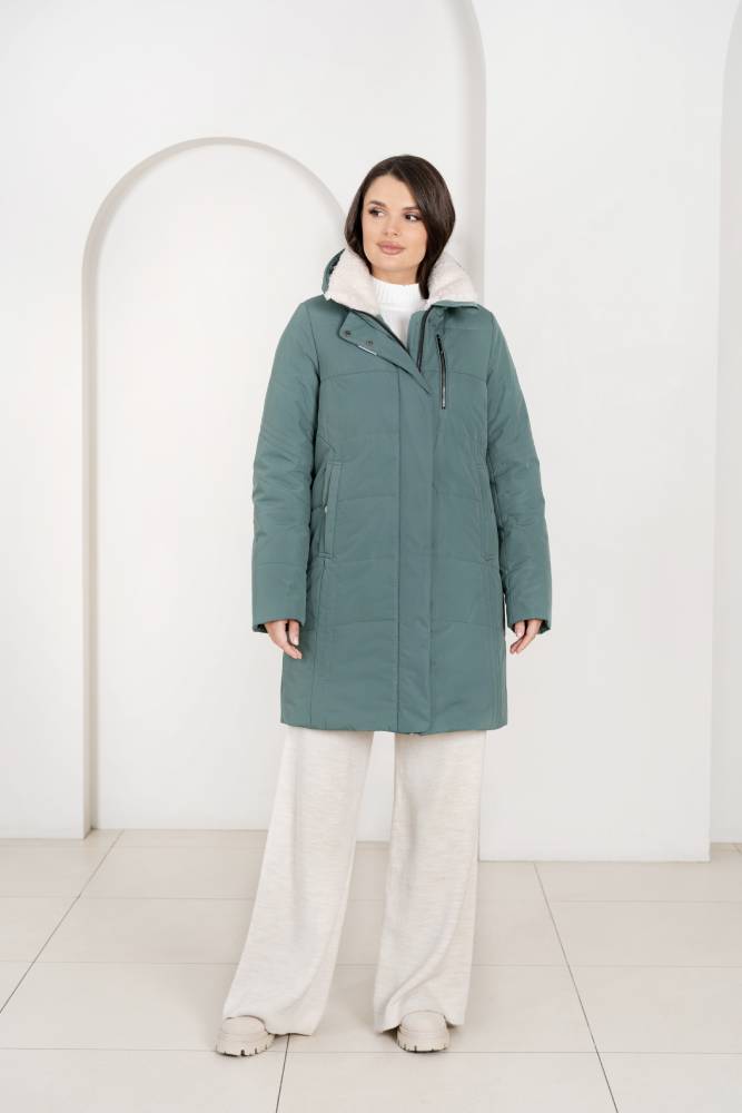Женское зимнее пальто 1007 - базовое пальто длиной 88 см из мембранной ткани с водоотталкивающим покрытием. Изделие полуприлегающего силуэта в лаконичном дизайне.
