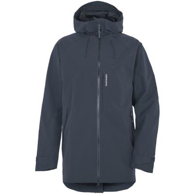 Куртка полностью водонепроницаемая и ветрозащитная с заклеенными швами. Классическая посадка с более длинным вырезом и выполнена из мягкой дышащей ткани. Куртка имеет высокий воротник и фиксированный регулируемый капюшон. Манжеты регулируются. Куртка имеет двустороннюю молнию спереди с пуговицей в отверстии, чтобы держать ее закрытой, если вы решите оставить молнию расстегнутой, что обеспечивает хорошую вентиляцию. Куртка имеет один нагрудный карман, два боковых кармана и один внутренний карман, все на молнии. Сдержанная светоотражающая отделка спереди и сзади. Подкладка куртки была окрашена с использованием технологии окрашивания раствором. Этот метод снижает потребление воды, энергии и химических веществ в процессе производства.