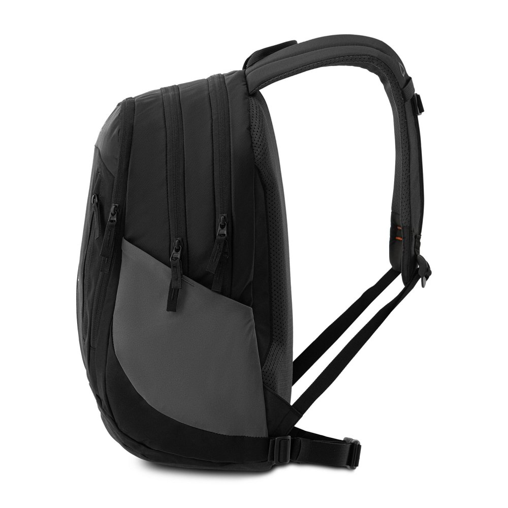 - Отделение для ноутбука или планшета расположено у самой спины и отделено от основного объёма рюкзака. Достаточно скинуть рюкзак на одно плечо, чтобы расстегнуть молнию и достать компьютер
