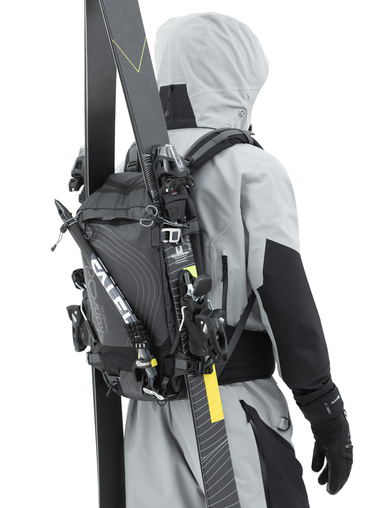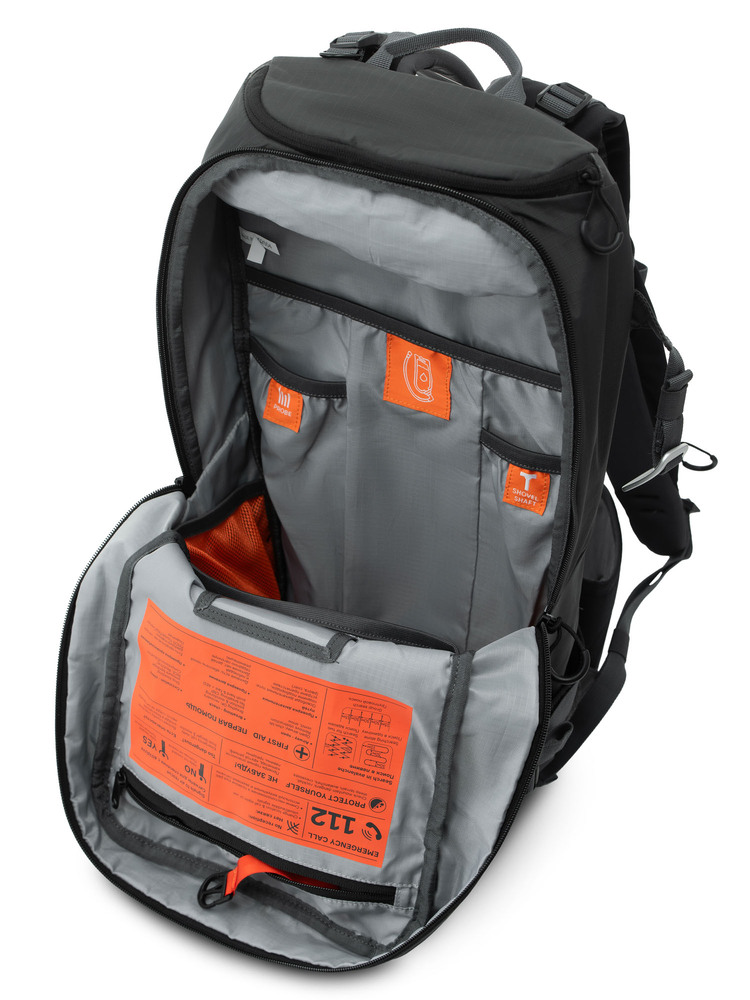 - Подходит для фрирайда. Специализированные карманы для лавинного снаряжения внутри основного отделения. Там же размещена подробная инструкция по спасению и карман для персональной информации.