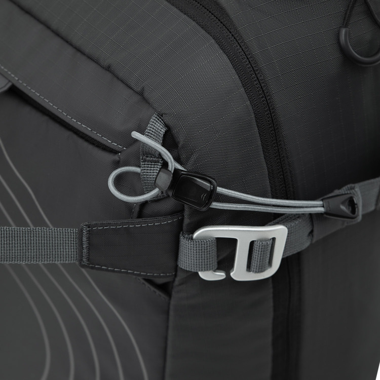 - Крепление для ледоруба и треккинговых палок позволяет брать с собой дополнительное альпинистское снаряжение для сложных маршрутов. Система крепления продумана так, что клюв ледоруба прячется в специальный карман для надёжной фиксации и защиты рюкзака от повреждений.