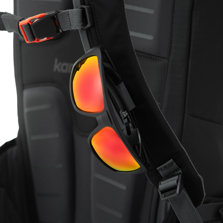- Специальный карман для горнолыжных очков с мягкой защитной подкладкой предохраняет линзы от царапин и повреждений. Дополнительно на лямке есть система крепления солнечных очков для быстрого доступа во время подъёма.
